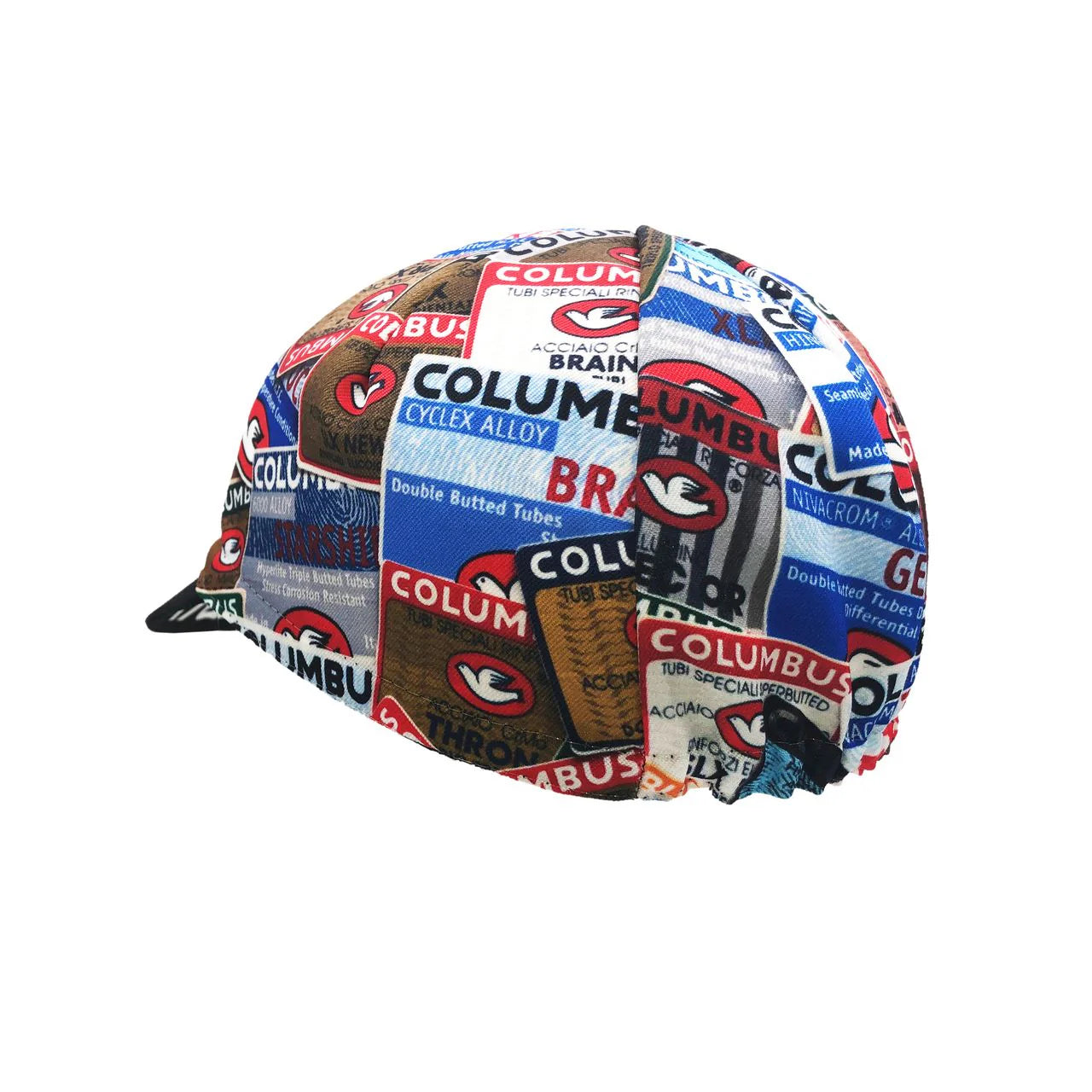 This cap takes its inspiration from the famous Columbus tags present on the seat tube. The collage includes a myriad of tube types from the Columbus archives. Look carefully and you can see stickers from tubesets such as AIR, MAX SL, SLX, NIVACROM, Genius, Altec, Starship, and XCR - a real who's who from the Italian company's archives. Shield the sun from your face and keep the sweat out of your eyes with the one-of-a-kind Columbus Multitag Cap.