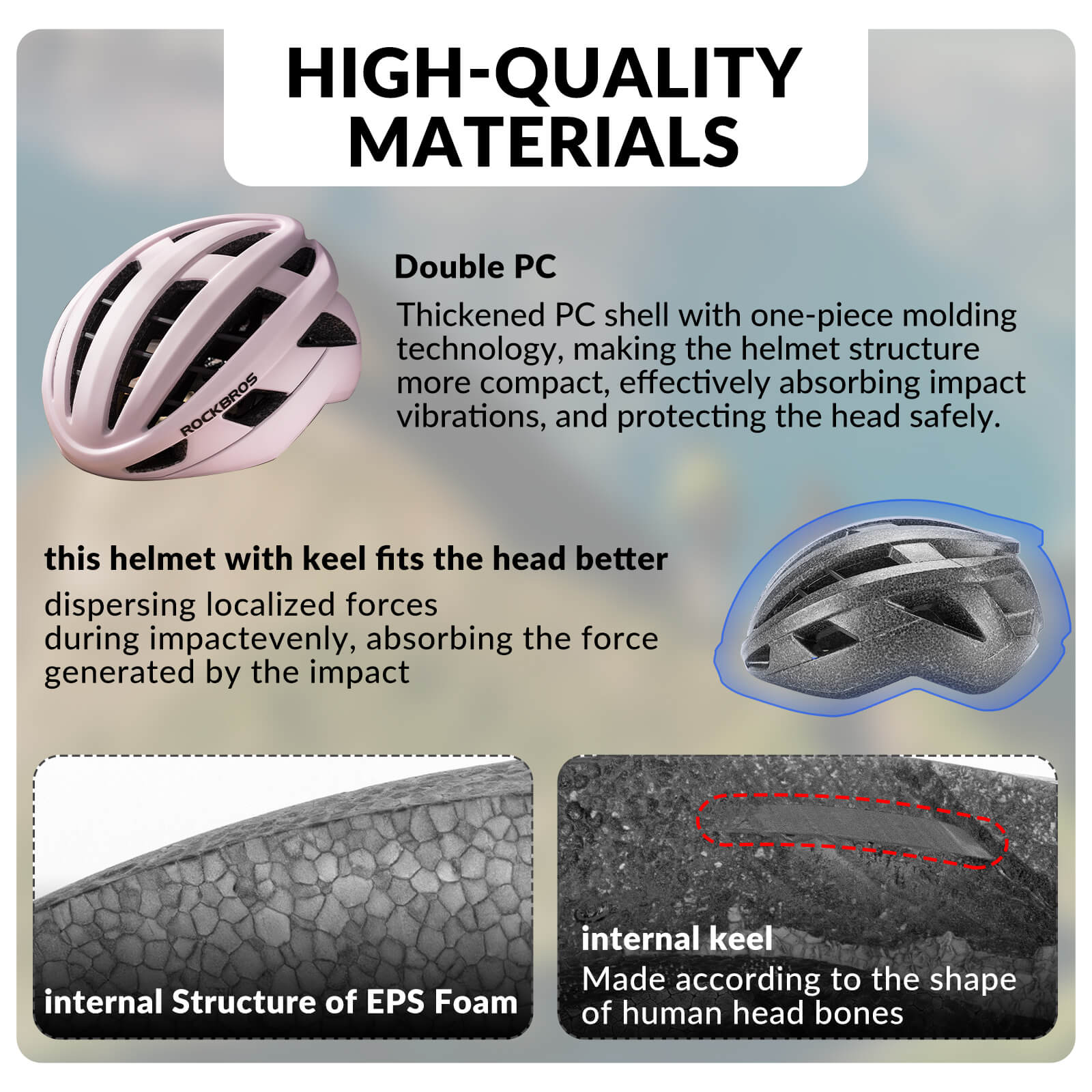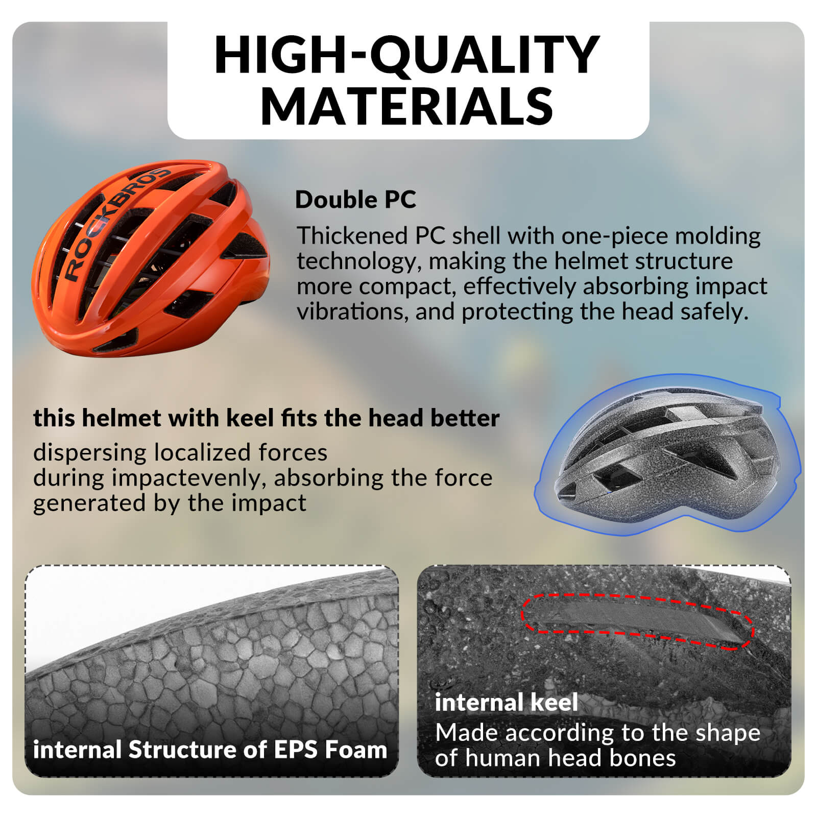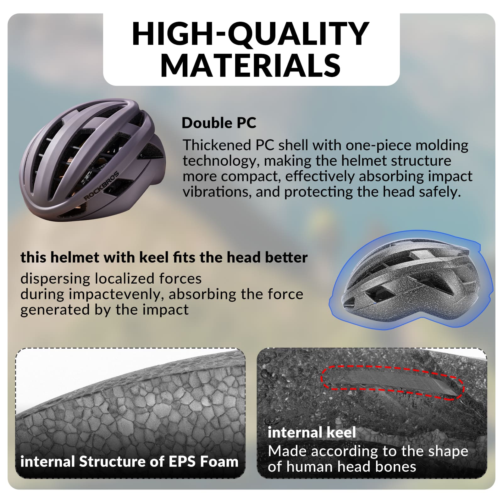 - In-Mould PC + EPS Multi-Layer Safety Construction – Durable PC outer shell effectively withstands external impact, while the high-density EPS foam compresses upon collision to evenly distribute force and reduce direct head injuries. An embedded frame reinforces helmet stability, and a thickened comfort liner minimizes friction for all-day wear.