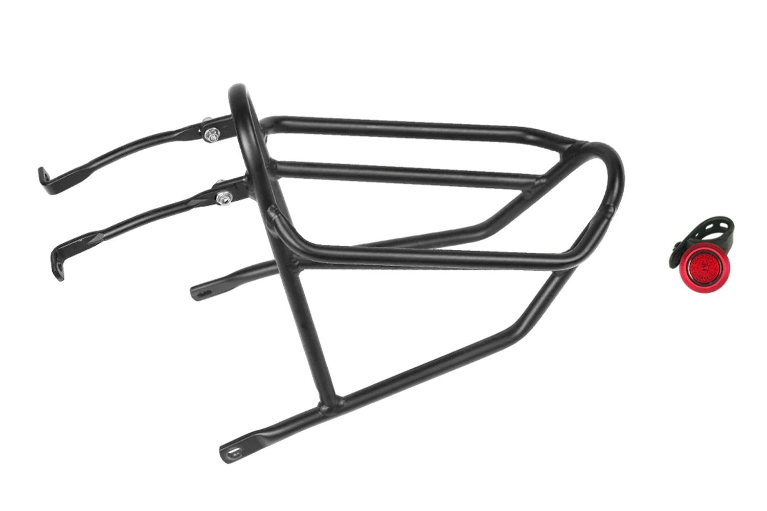 1. 52V Jaguarundi/ Deer/ Commuter rear rack package contains a rear rack, a tail light, and a strap.