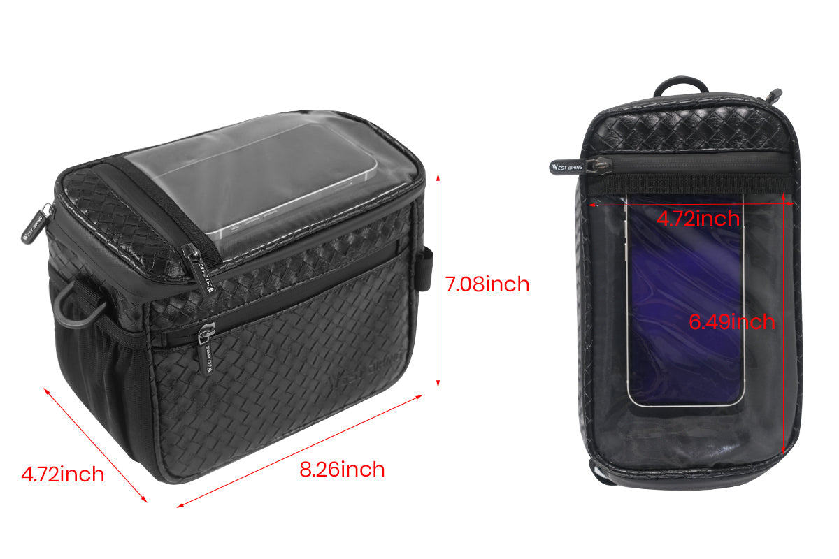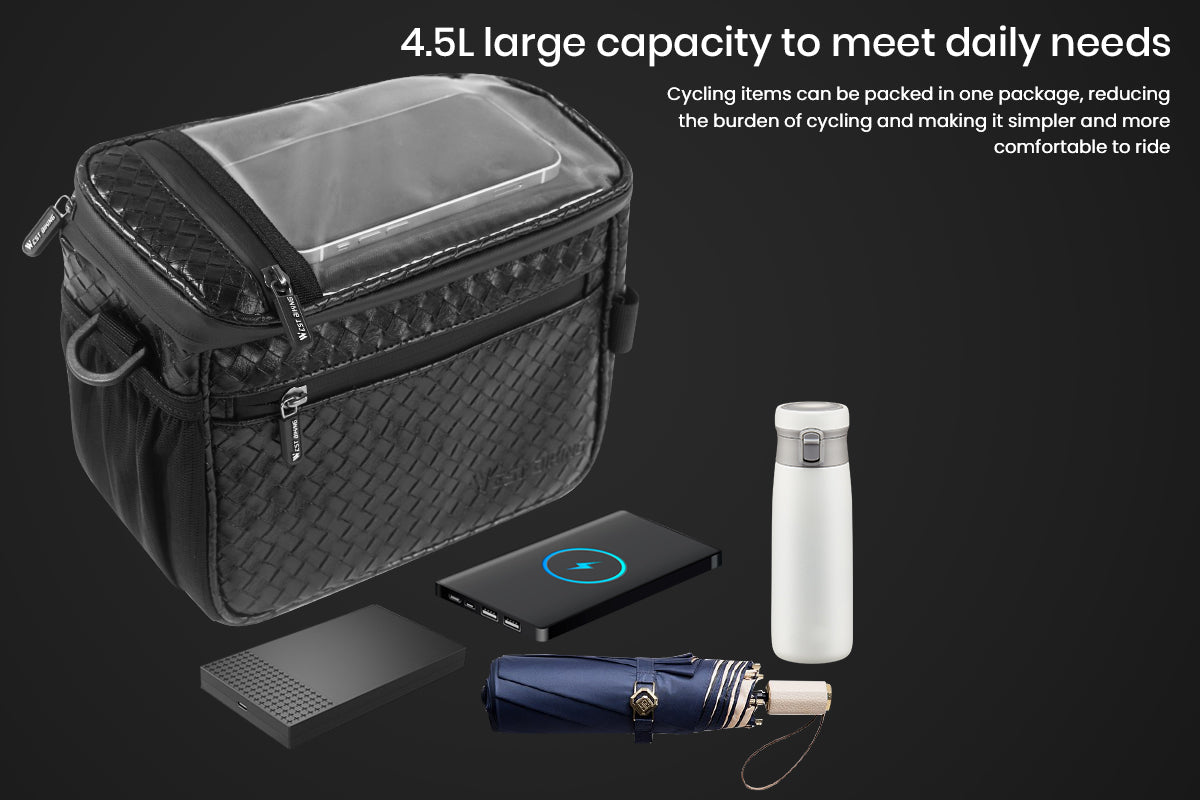 4.5L Large Capacity: Provides enough storage space to accommodate more personal items. The bike front bag can hold more personal belongings like cellphones, water, bike repair tools, gloves, wallet, sunglasses, etc. Making bike riding easier and safety