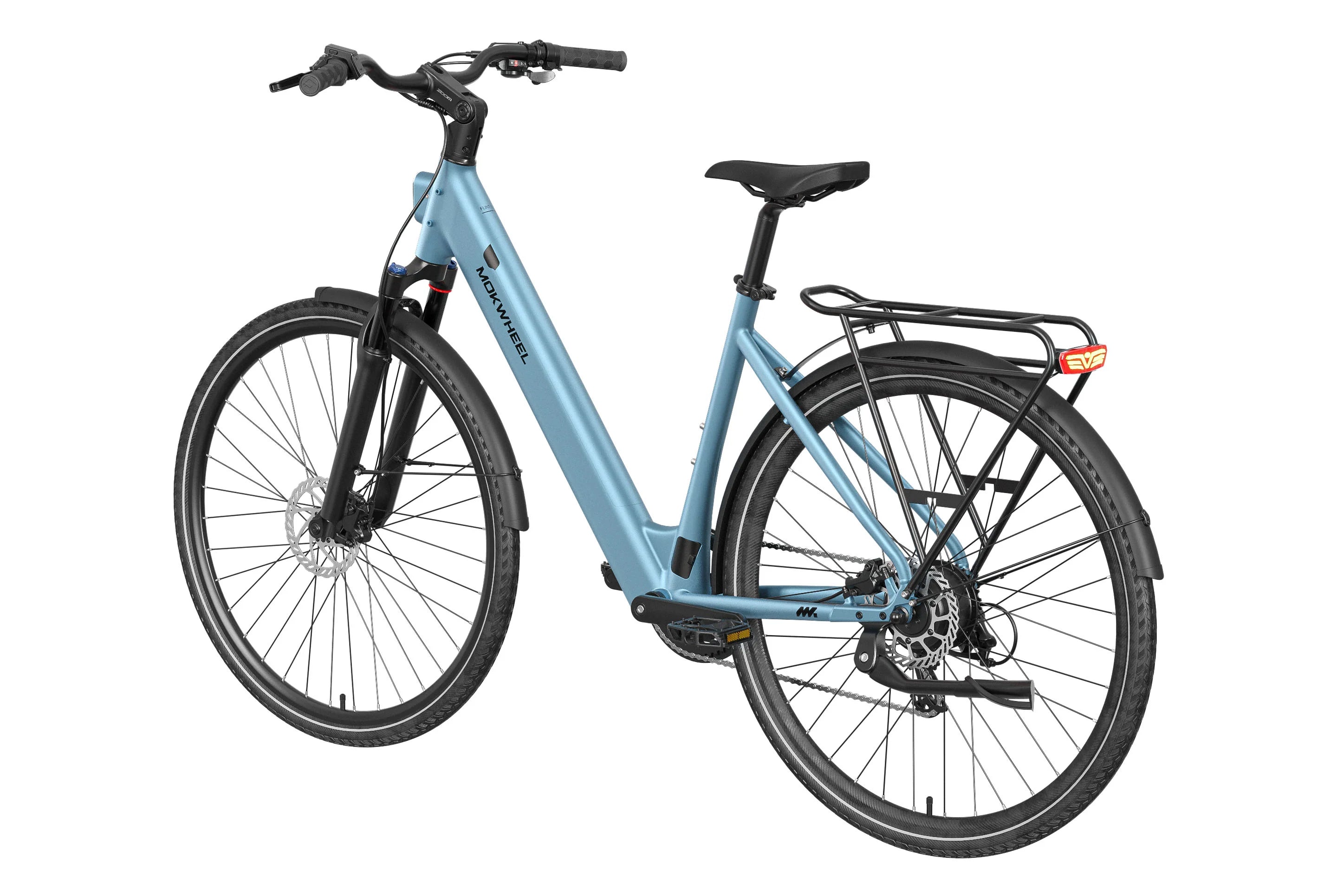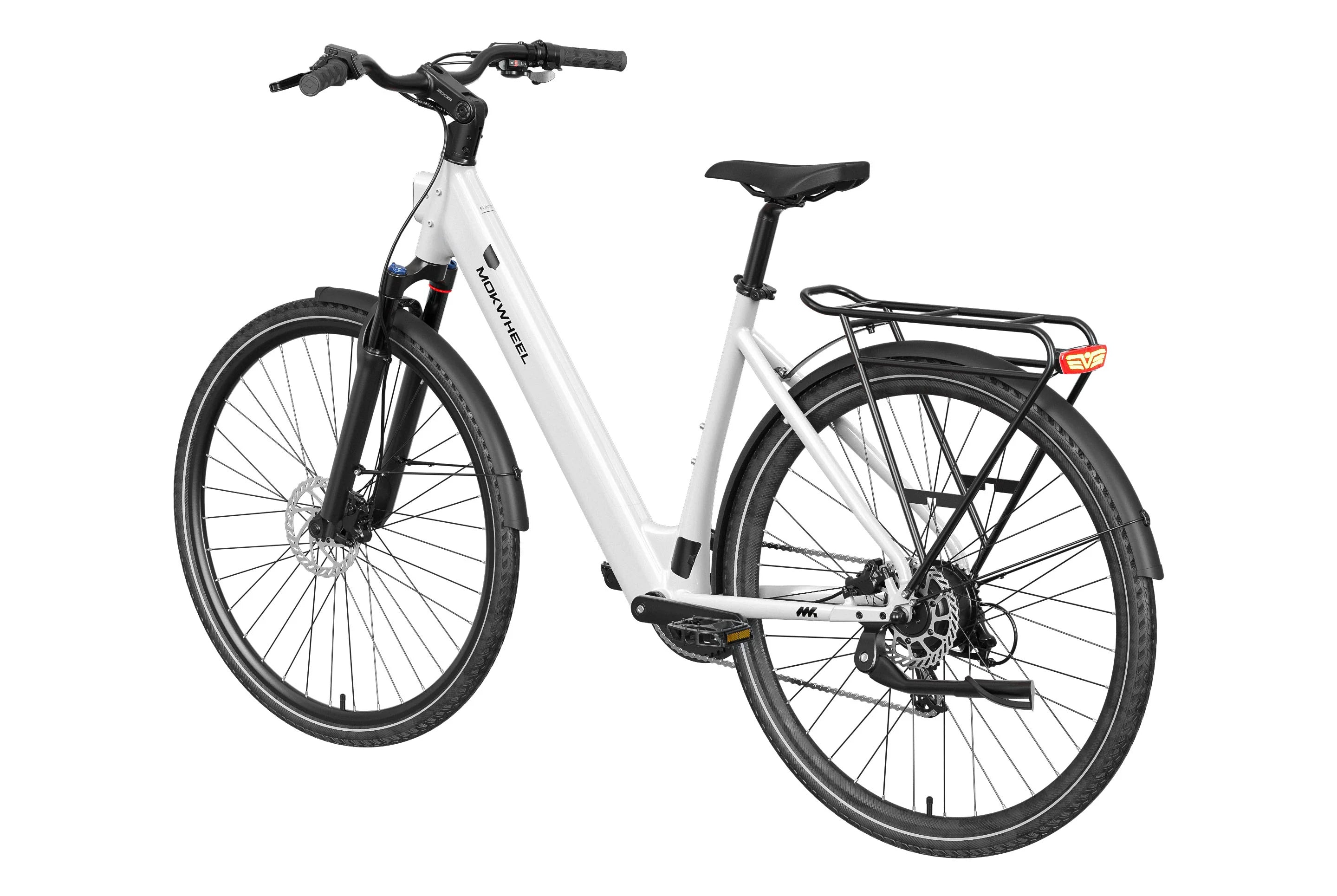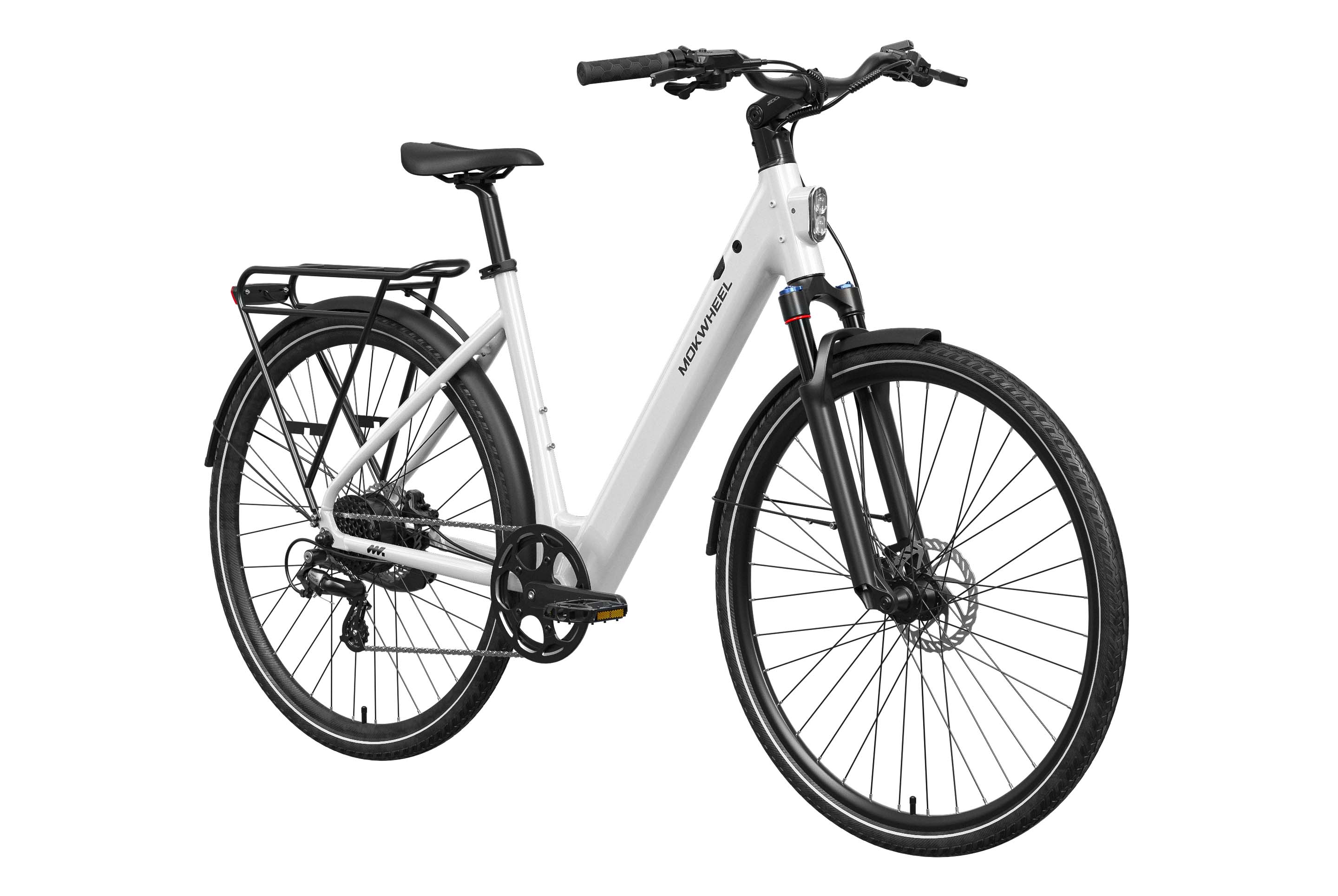 FLINT is a lightweight electric bike designed by Mokwheel specifically for city commuting, focusing on agile handling, smooth power delivery, and a more convenient daily riding experience. It is powered by a 550W peak motor with 40Nm of torque and supports a 350-lb load, maintaining stable and sufficient output on city roads, in acceleration sections, and on mild slopes. With a hydraulic brake system, SHIMANO 8-speed drivetrain, and a lightweight frame structure, it achieves an excellent balance of speed, quality, and reliability, meeting the needs of urban commuting, daily transportation, and frequent use.
