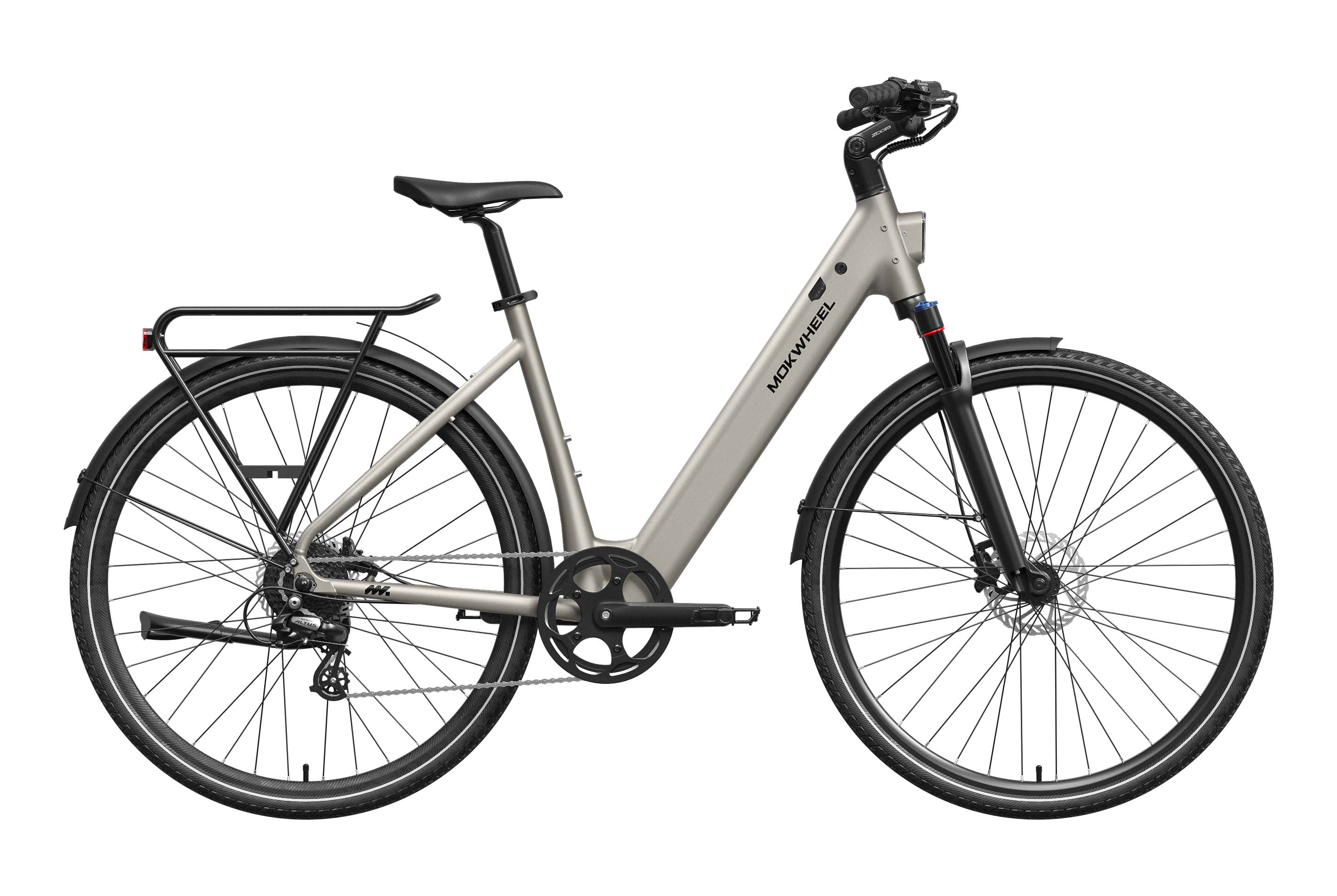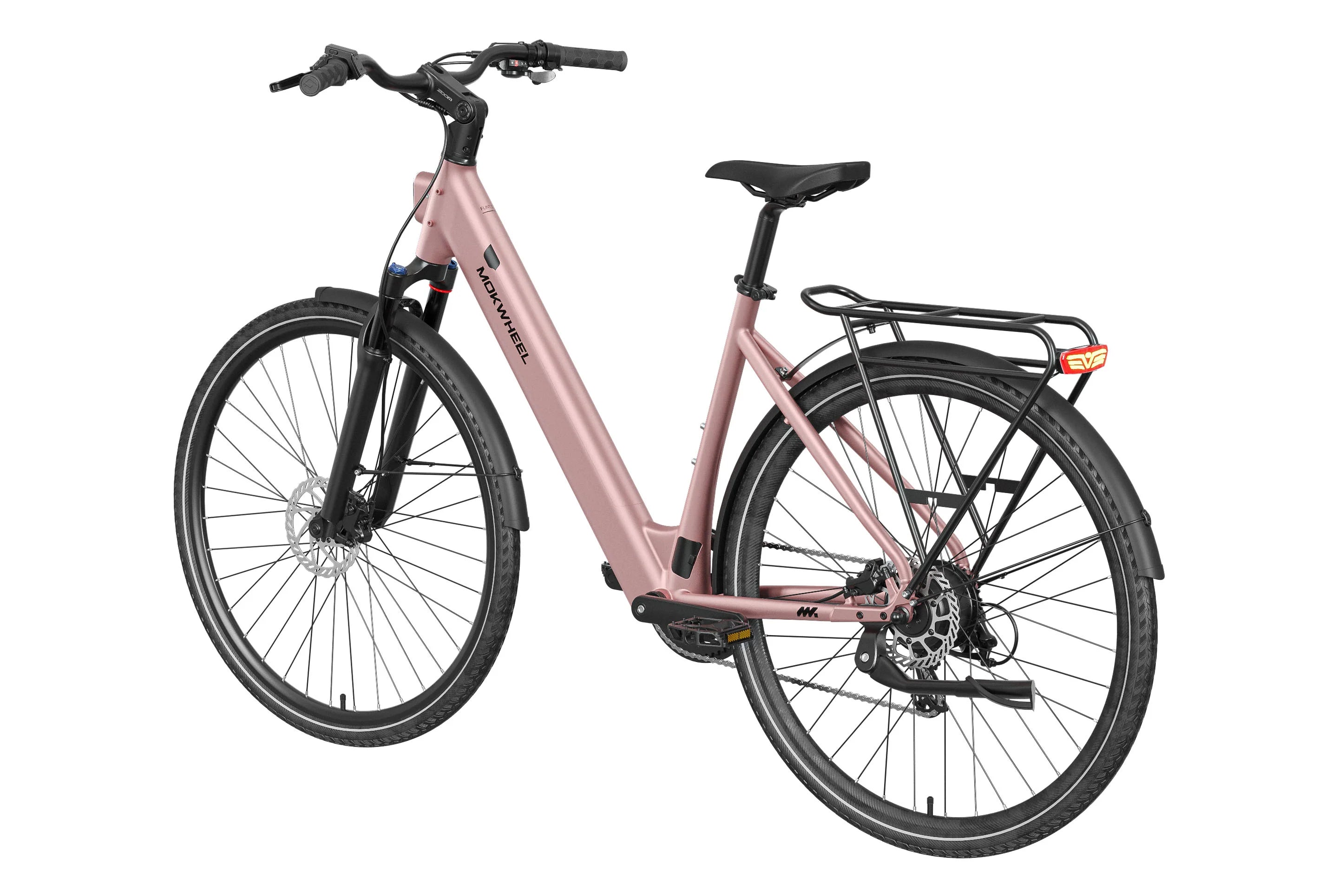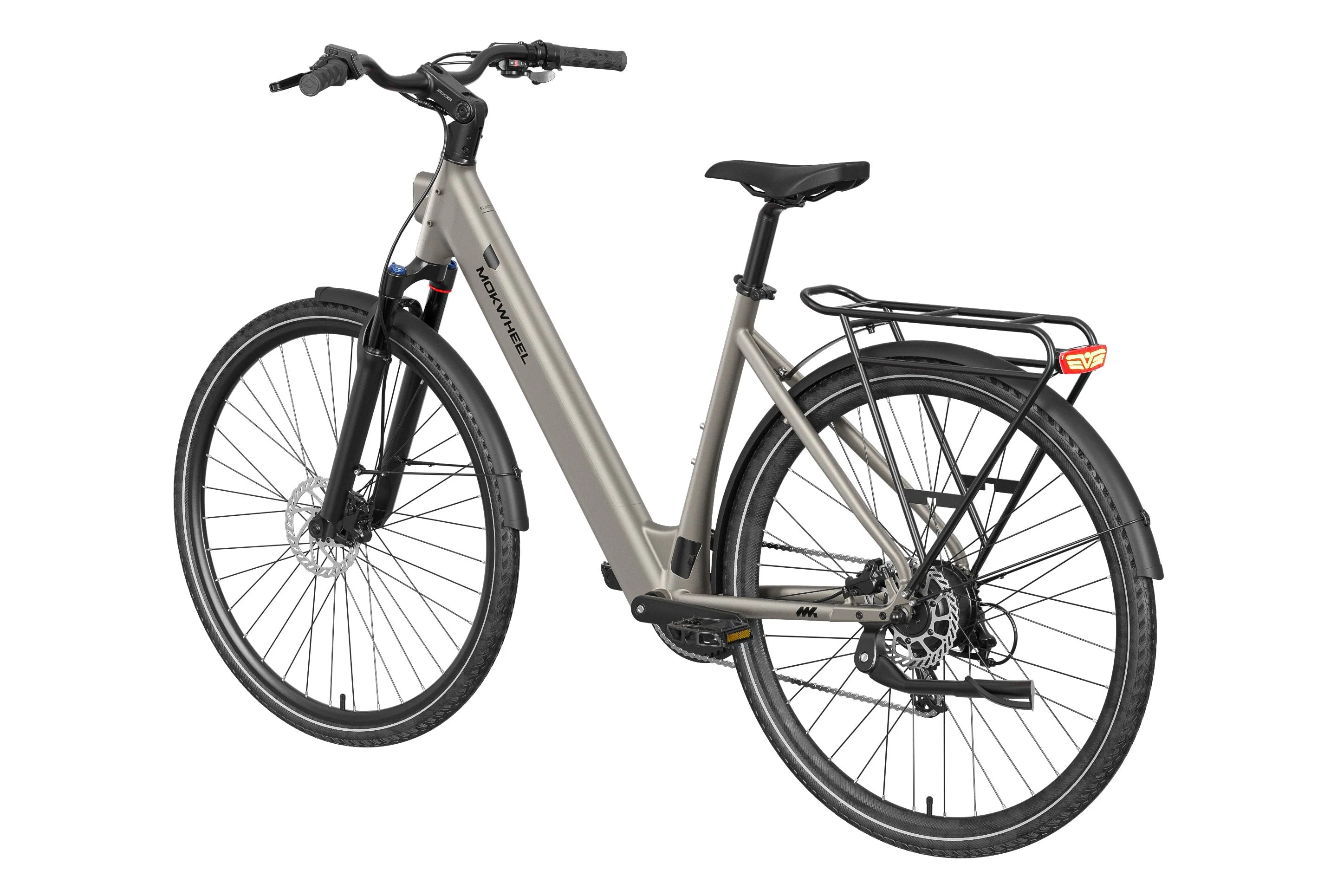 FLINT is a lightweight electric bike designed by Mokwheel specifically for city commuting, focusing on agile handling, smooth power delivery, and a more convenient daily riding experience. It is powered by a 550W peak motor with 40Nm of torque and supports a 350-lb load, maintaining stable and sufficient output on city roads, in acceleration sections, and on mild slopes. With a hydraulic brake system, SHIMANO 8-speed drivetrain, and a lightweight frame structure, it achieves an excellent balance of speed, quality, and reliability, meeting the needs of urban commuting, daily transportation, and frequent use.