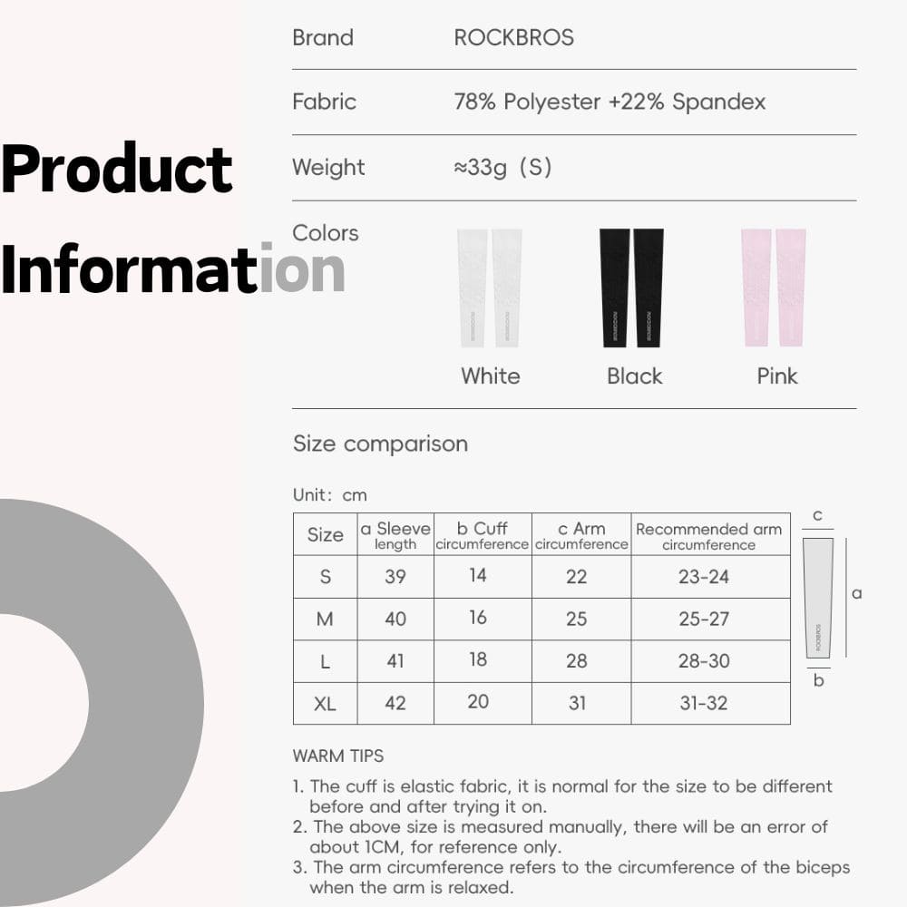 - Moisture-Wicking & Breathable:Quickly absorbs and disperses sweat for rapid evaporation, keeping arms dry and comfortable during long rides or workouts.