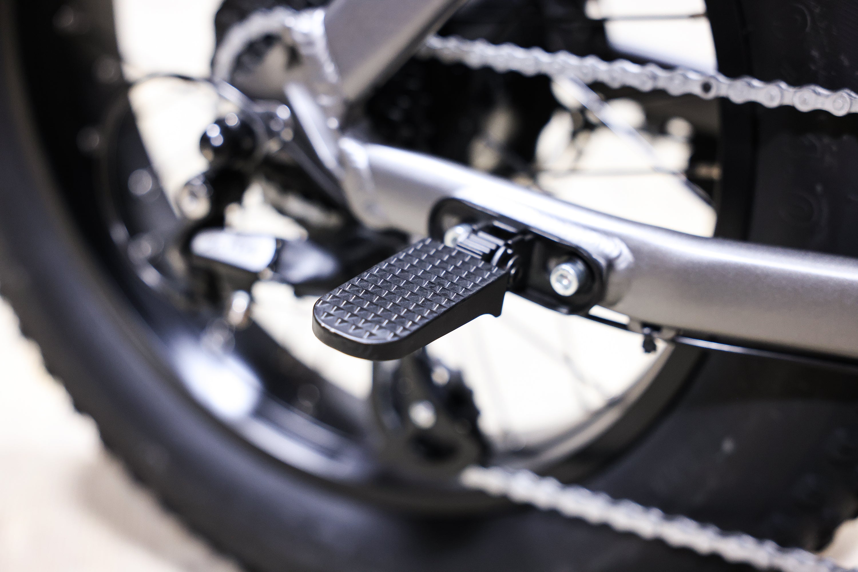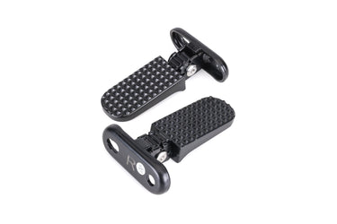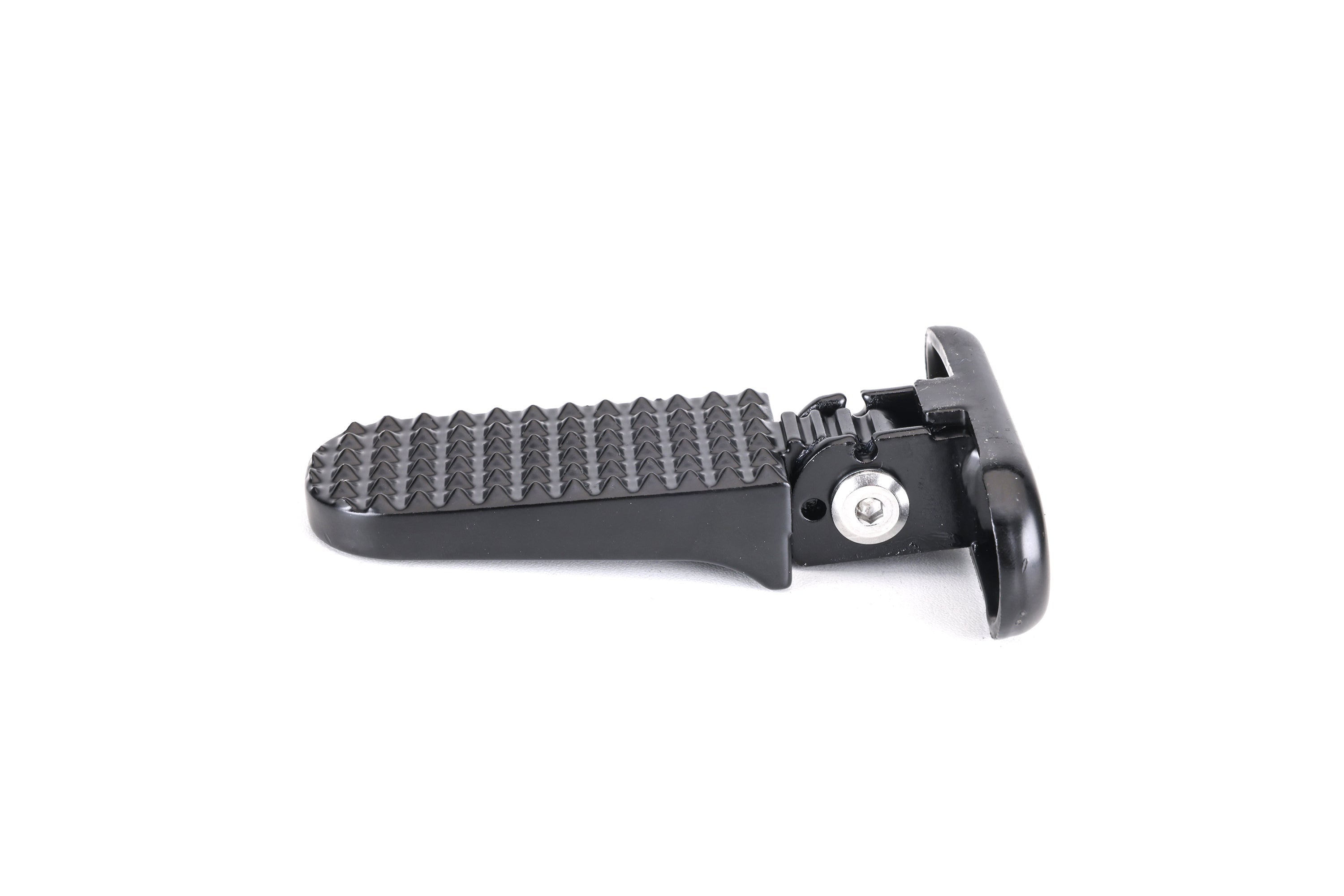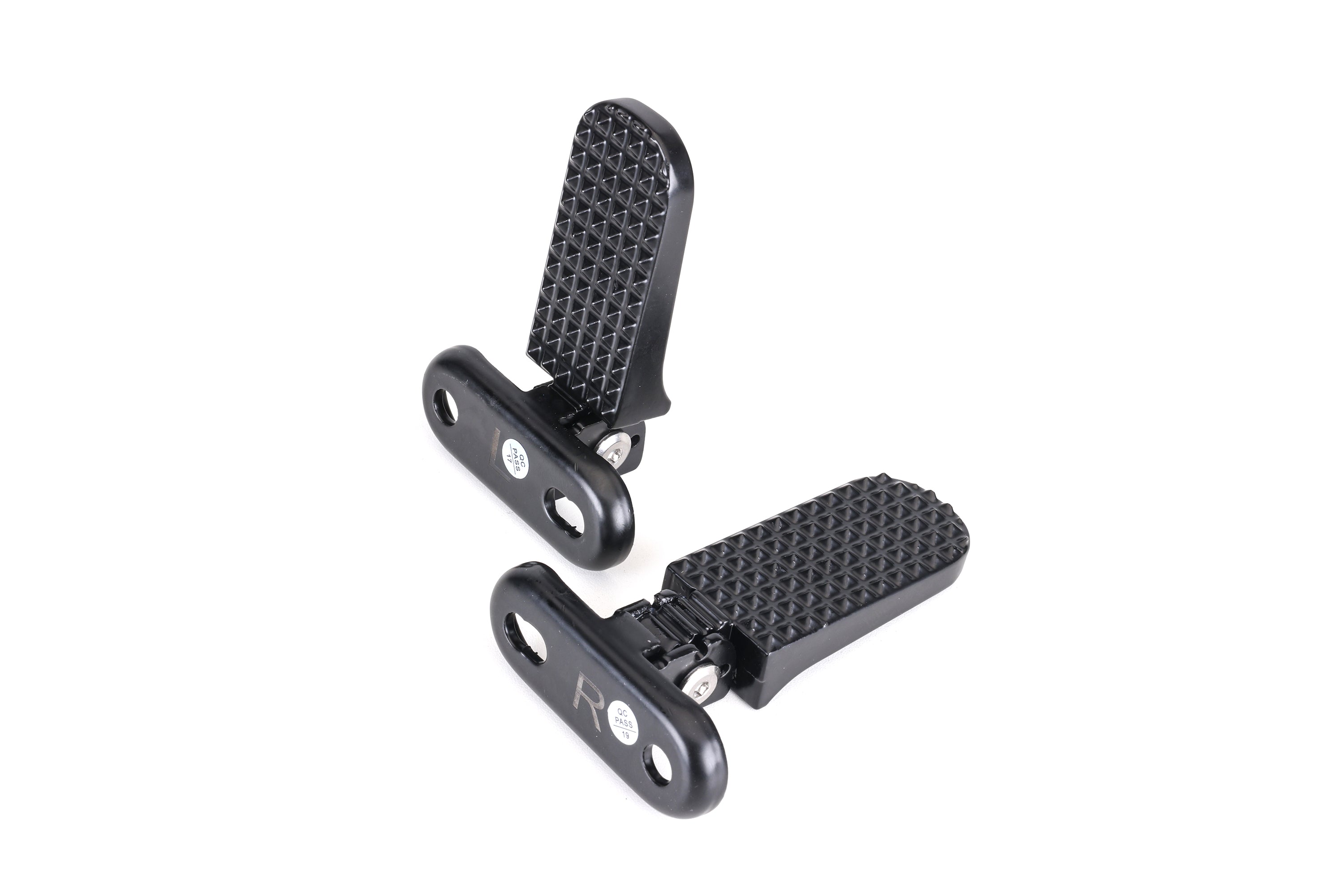 Troxus folding foot peg, fold up and out of the way when you are riding solo and fold down when you have that extra passenger on the back of your bike.