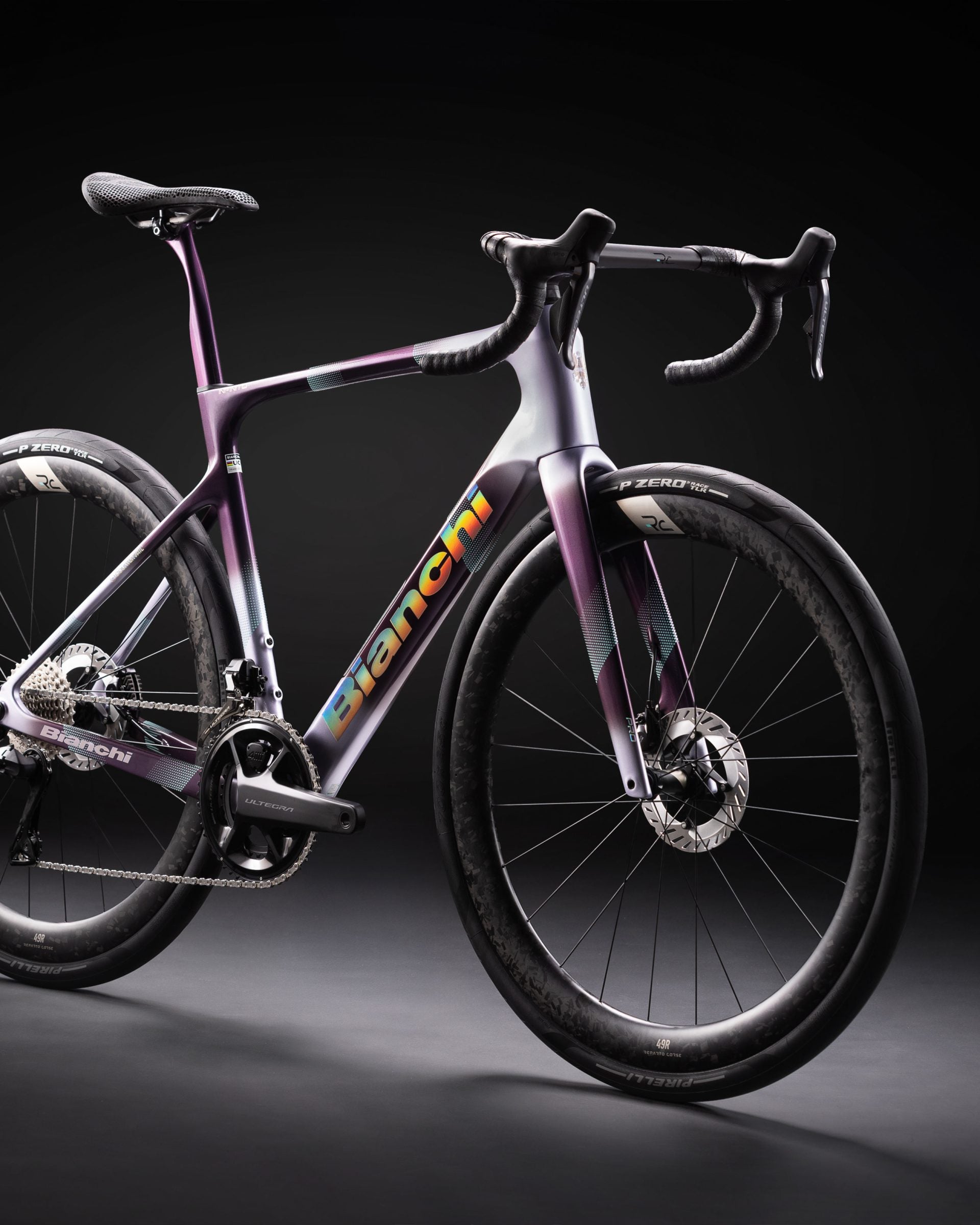 New RC 49R carbon wheels - engineered by Bianchi’s Reparto Corse - are being introduced on the Infinito Pro for the very first time. They feature a 49mm profile and 25mm internal width, and have been optimised to complement the frame.