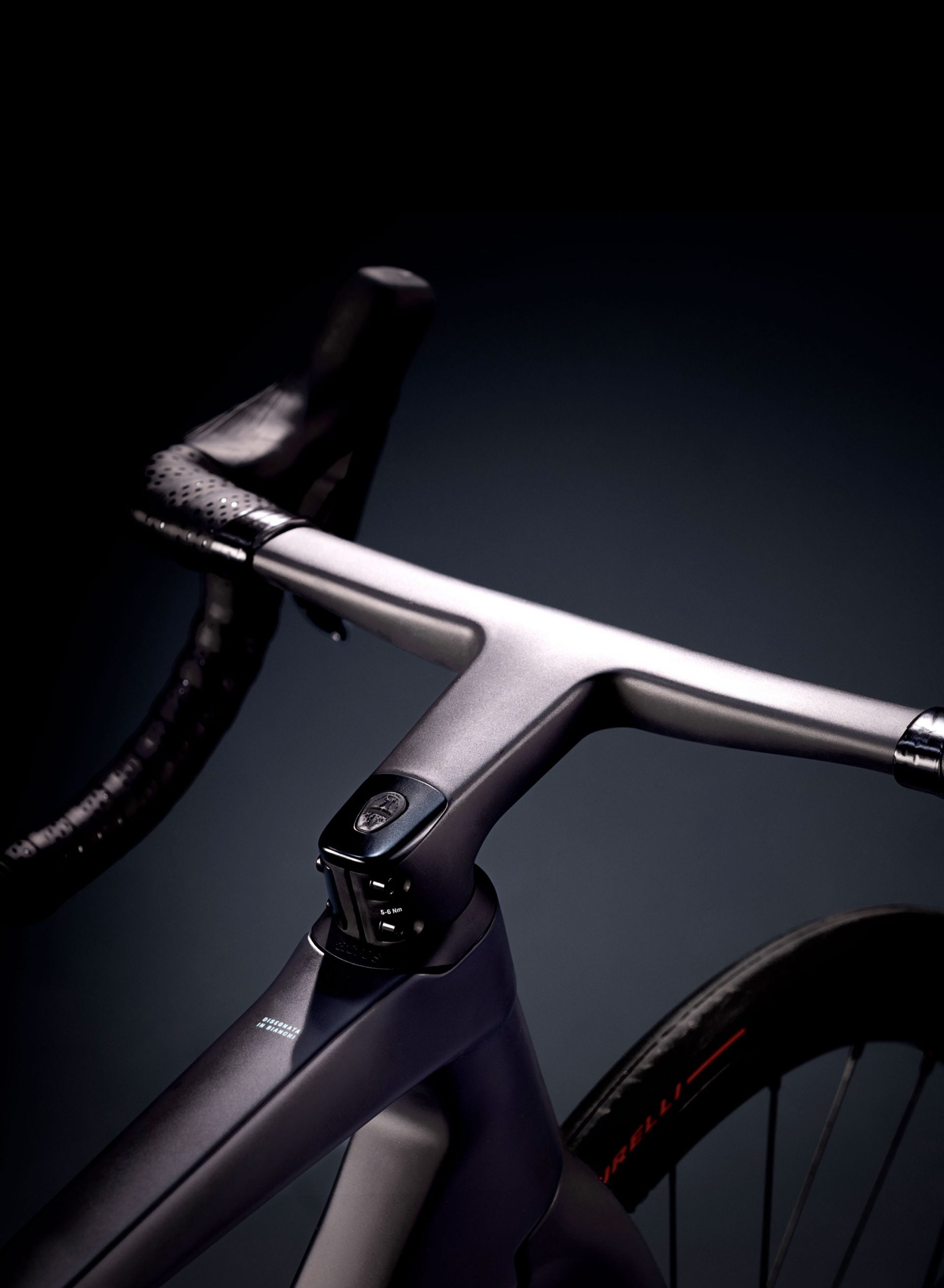 The overall weight of the Specialissima RC is 6.6kg (14.55lbs) with a variation of (+/-) 5%. Achieving this low weight meant strategic redistribution of material from the rear of the bike to the front, with superfine seat stays and thinner chain stays, while also amping up the shape of the head tube to create the more aerodynamic front-end.